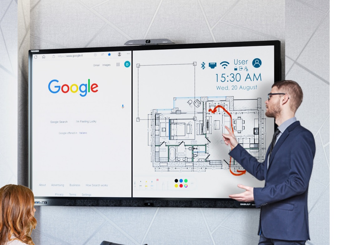 Monitor interattivo Dahua 65" UHD 4K Touch 20 tocchi 450nit ram 4gb emc 32gb con webcam wi-fi e android9