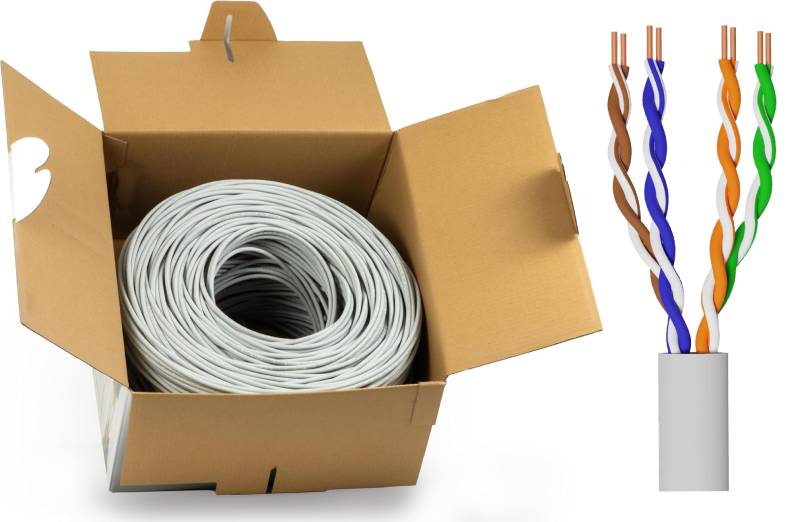 Bobina cavo di rete Matassa 305mt non schermato UTP cat5E sezione awg23 lszh Classe EC supporta reti Poe e Poe+
