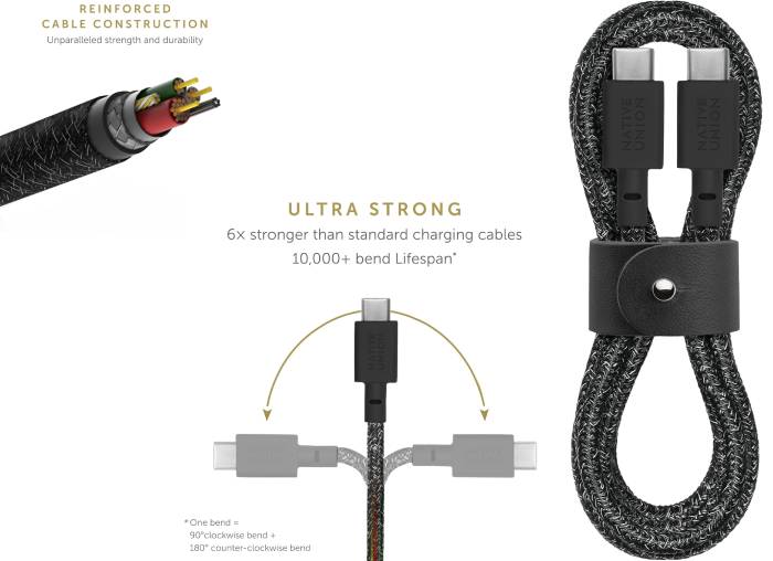 Native Union Belt Cable Pro da USB-C a USB-C 240Watt 2.4MT colore Nero Cosmos