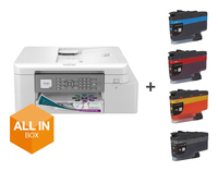 MFC-J4335DWXL è un potente dispositivo che offre funzionalità di stampa, copia, scansione e fax di alta qualità. Tra le numerose funzioni professionali, è possibile usufruire di un'ampia gamma di opzioni di connettività e semplificare il multitasking con l'alimentatore automatico di documenti da 20 fogli. Stampa di più senza interruzioni con le cartucce di inchiostro nella confezione che stampano fino a 6000 pagine in bianco e nero e 5000 pagine a colori*.