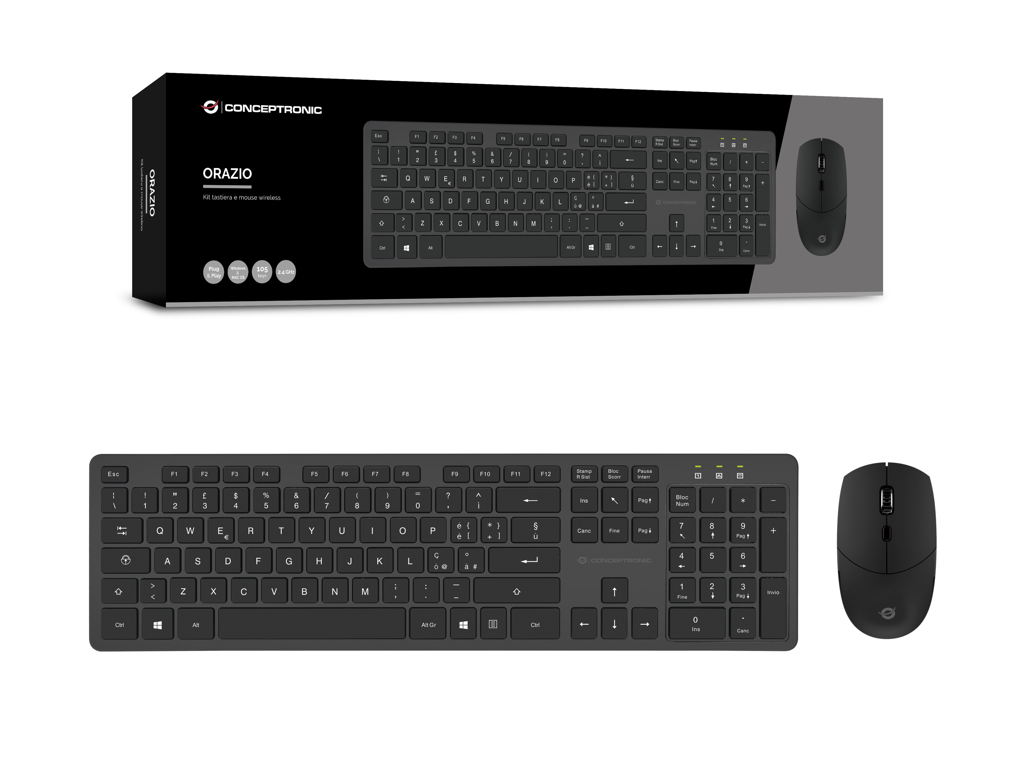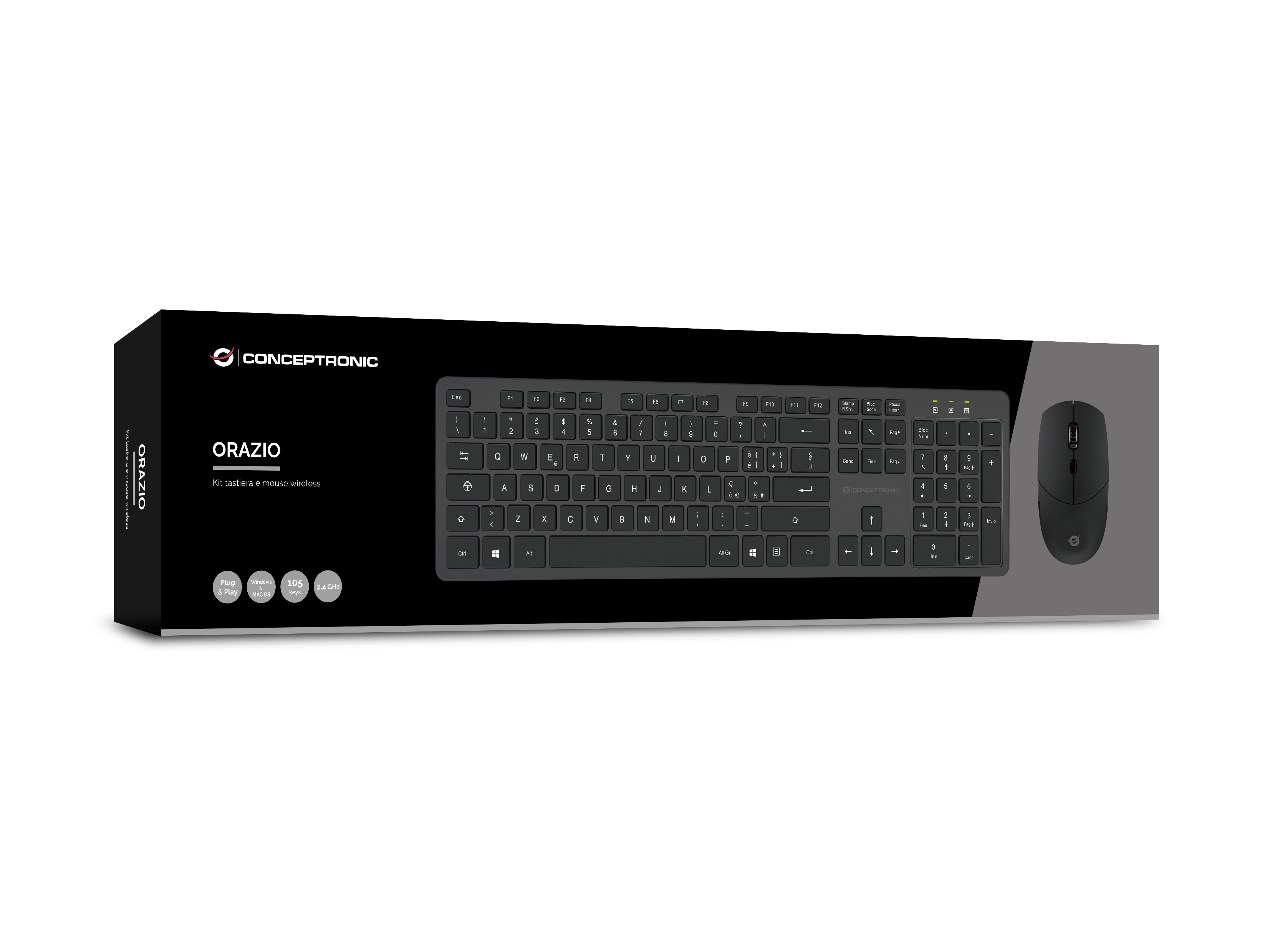 Conceptronic ORAZIO01IT tastiera Mouse incluso Ufficio RF Wireless QWERTY Italiano Nero