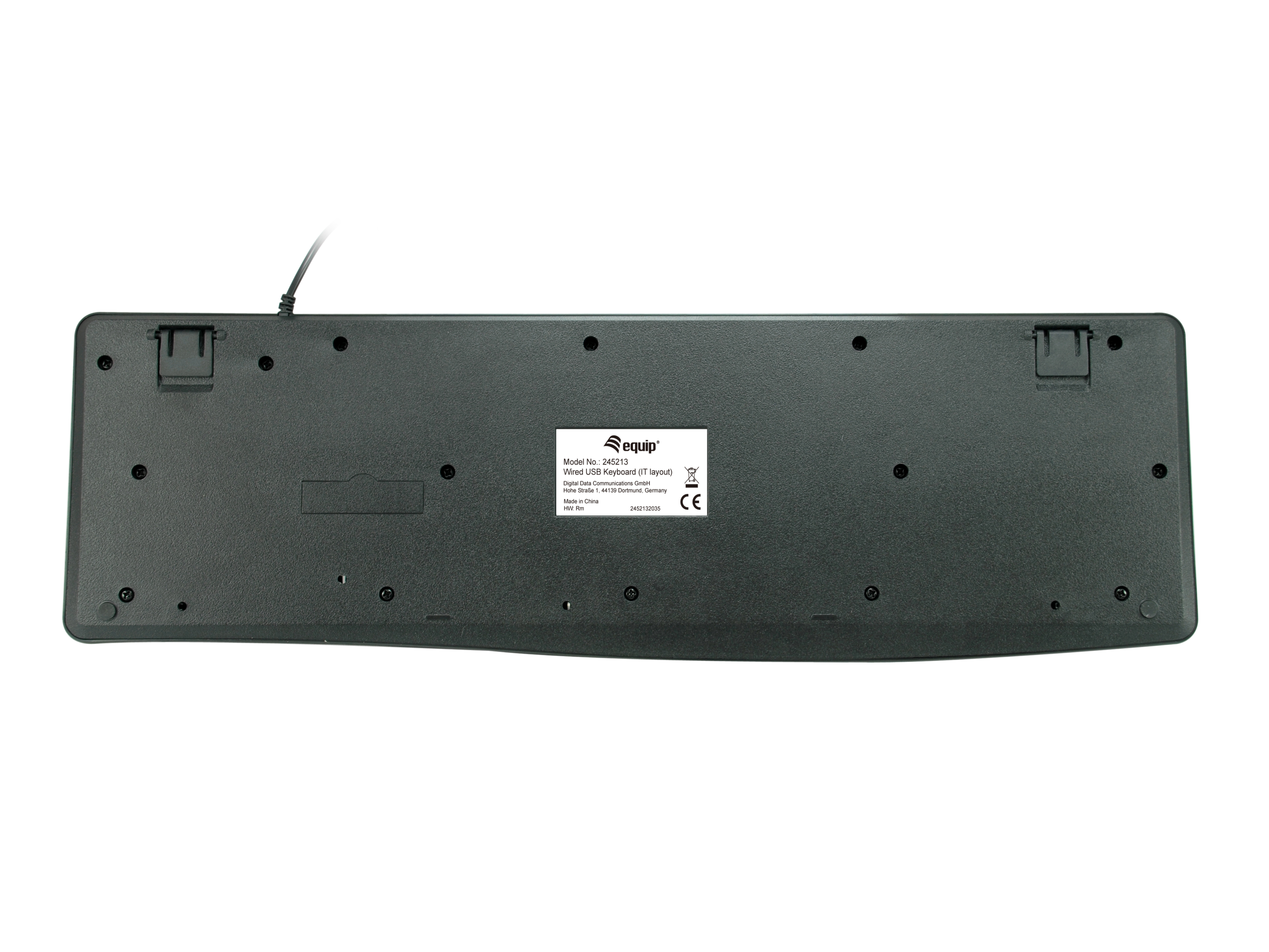 Equip 245213. Fattore di forma tastiera: Full-size (100%). Stile tastiera: Dritto. Tecnologia di connessione: Cablato, Interfaccia dispositivo: USB, Struttura tastiera: QWERTY, Numero pulsanti tastiera: 105. Lunghezza cavo: 1,5 m. Utilizzo raccomandato: Ufficio. Colore del prodotto: Nero