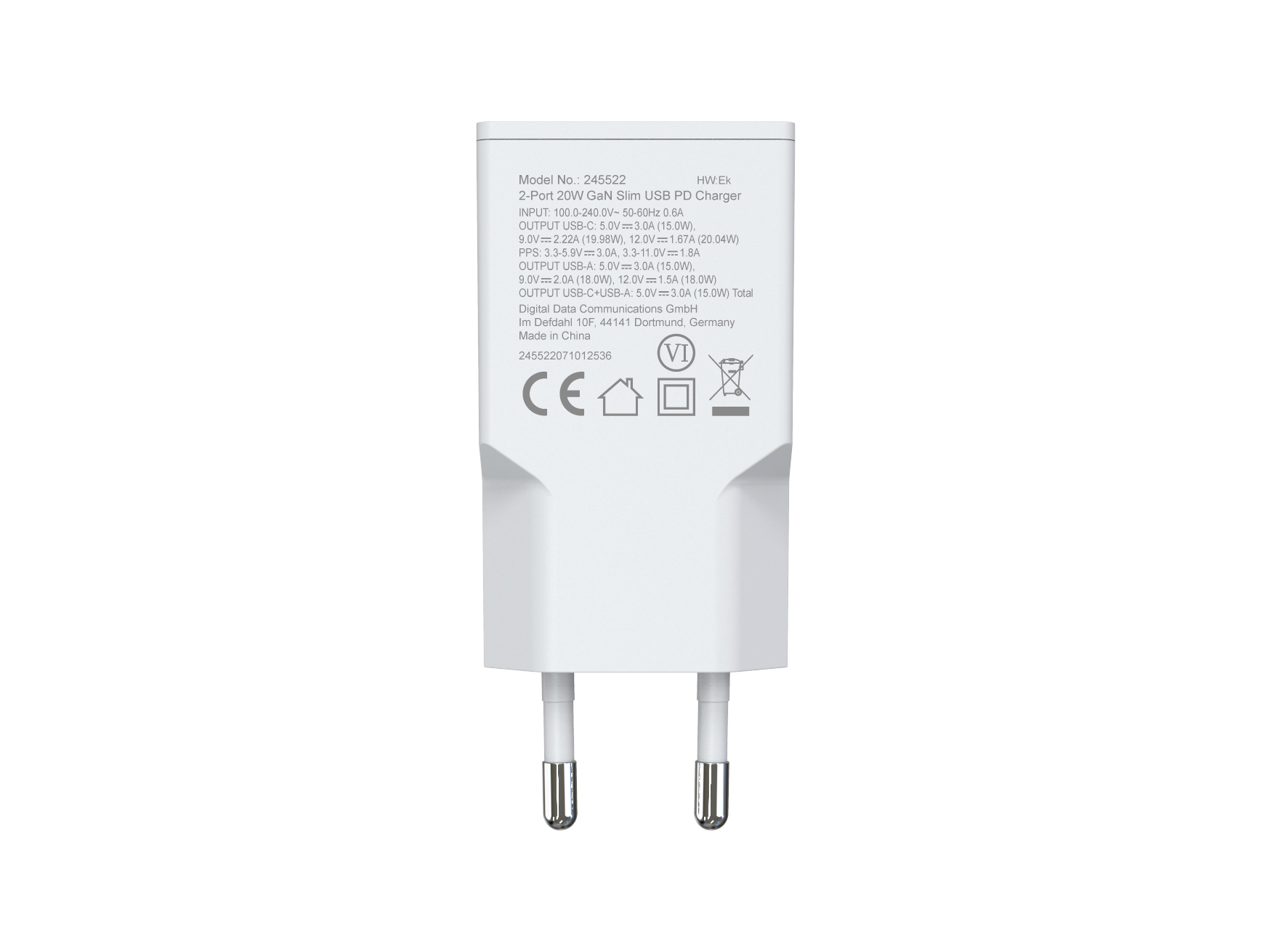 Equip 245522. Tipo di caricatore: Interno, Tipologia alimentazione: AC, Compatibilità caricatore: Universale. Voltaggio di ingresso: 100 - 240 V, Tensione di uscita (max): 12 V. Quantità porte USB 2.0: 1, Quantità di porte USB Tipo C: 1, Ricarica rapida, Funzionalità di protezione dell'alimentazione: Sovracorrente, Sovraccarico, Sovraccarico, Cortocircuito. Colore del prodotto: Bianco