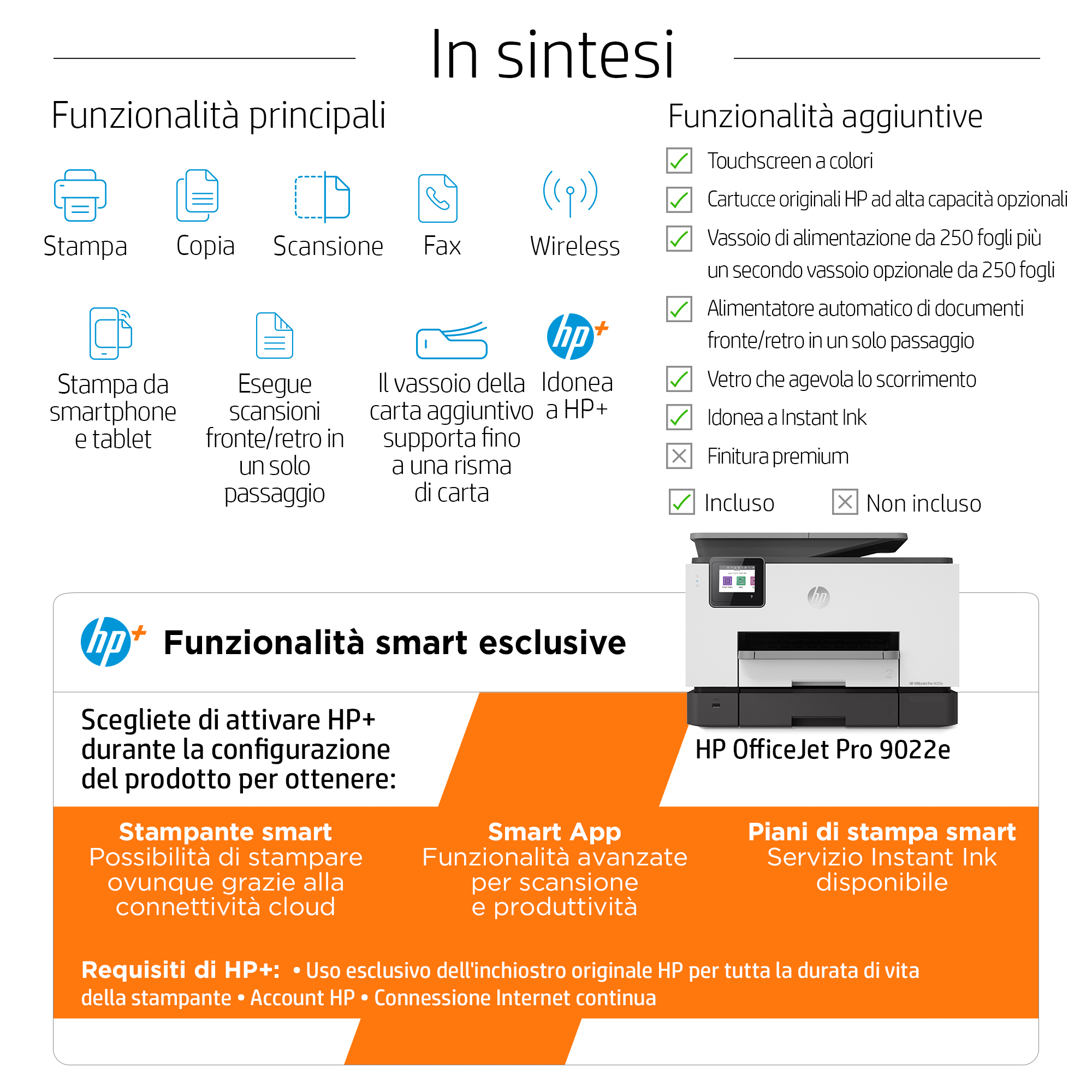 HP OfficeJet Pro 9022e Wireless All-in-One Colore Stampante, Instant Ink; Stampa fronte/retro