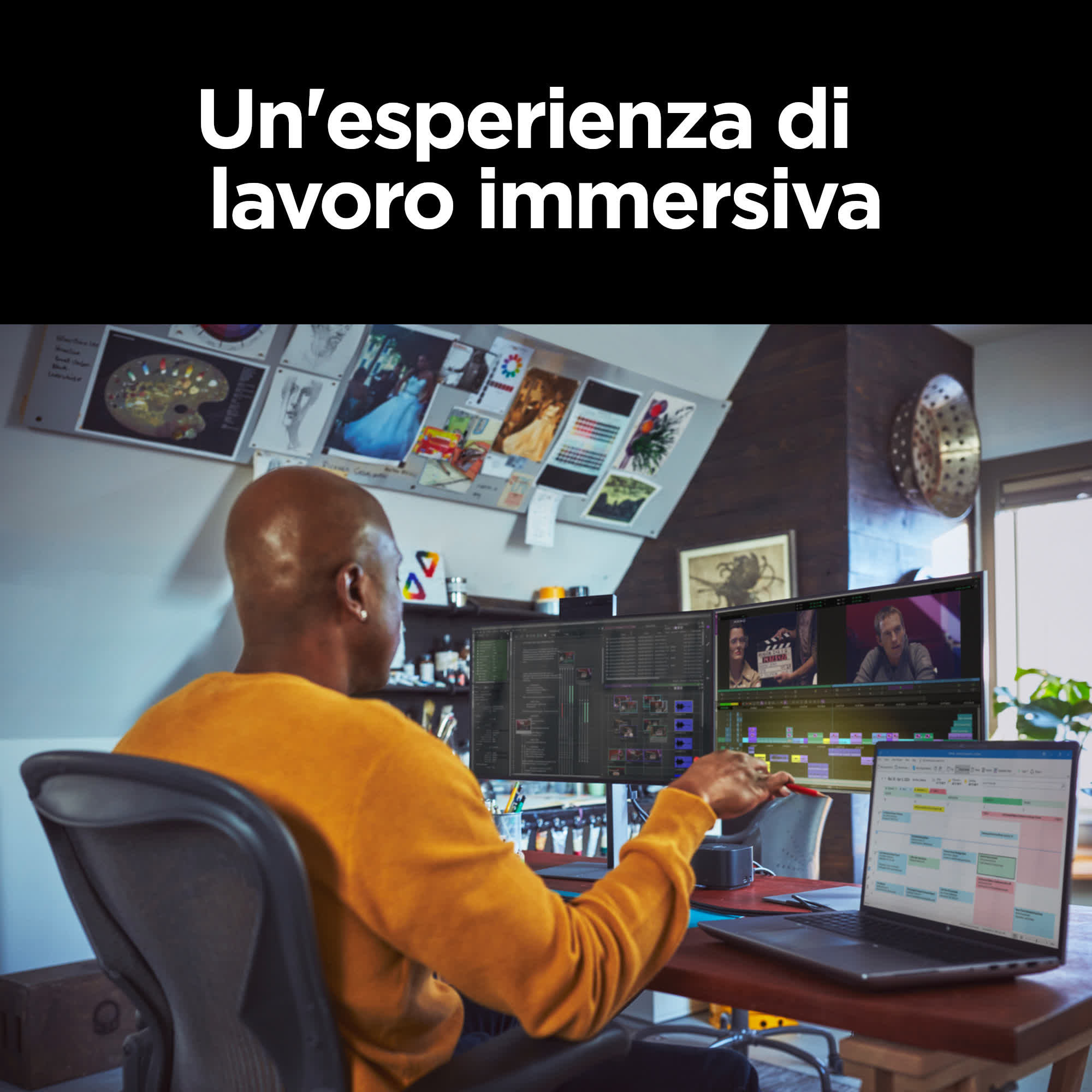Un notebook con la potenza di un desktop ZBook Fury è un notebook dotato di una potente CPU di classe desktop: grazie a questa, potete gestire con semplicità anche i progetti più complessi. Con la scheda grafica integrata o dedicata, uno schermo straordinario e tutta una serie di funzionalità di collaborazione, potete lavorare con facilità ai vostri progetti di videoediting in 8K, creare rendering in 3D o addestrare modelli di machine learning. Eccellenti prestazioni di livello professionale, ovunque vi porti il lavoro.