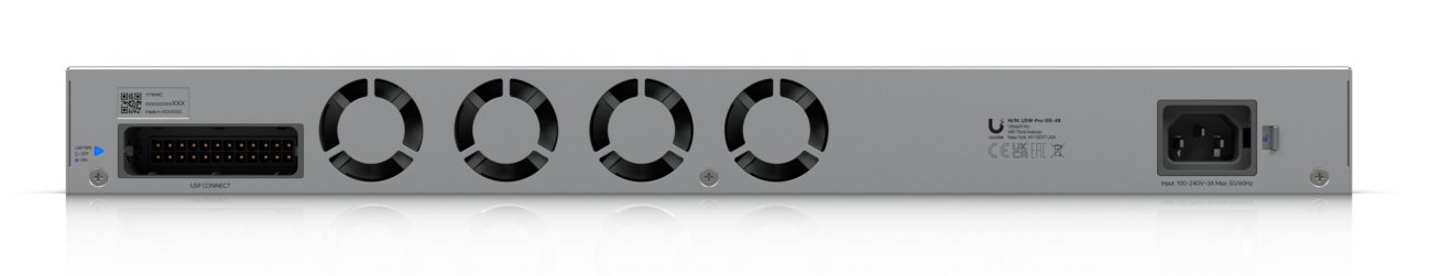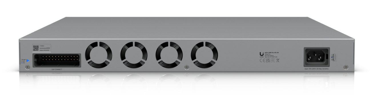 Ubiquiti UniFi Pro XG 48. Tipo interruttore: Gestito, Livello del commutatore: L2/L3. Tipo di porte RJ-45: 10G Ethernet (100/1000/10000), Quantità di porte RJ-45: 48. Dimensioni tavola MAC: 128000 voci, Capacità di commutazione: 920 Gbit/s. Connettore di alimentazione: AC/DC. Montaggio rack, Fattore di forma: 1U