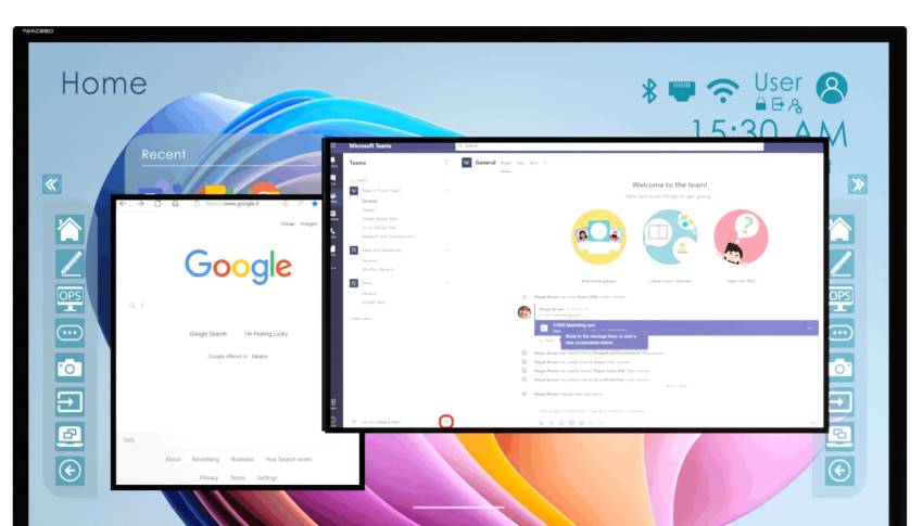 Il monitor integra 8 GB di RAM e 128 GB di memoria interna, assicurando velocità, multitasking e ampio spazio per archiviare applicazioni, documenti e contenuti multimediali. Perfetto per la didattica interattiva, il lavoro di gruppo e la presentazione di progetti aziendali in alta definizione.